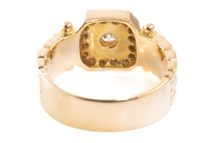 Mens ring with round natural Diamonds totalling 0.36ct (Estimated grading: G-H SI). 18ct yellow gold. Ring size Q. Weight: 12.1g. (Pre-owned)