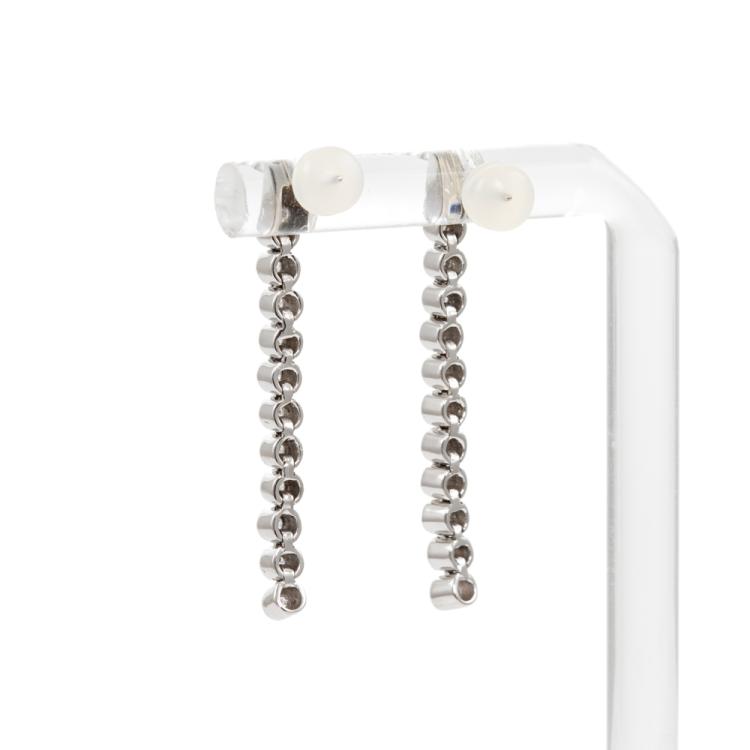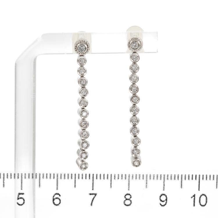 Diamond drop earrings with round natural Diamonds totalling 0.40ct (Estimated grading: H SI). 18ct white gold with silicon backs. Drop length: approx. 3.5cm. Weight: 5.3g. (Pre-owned)
