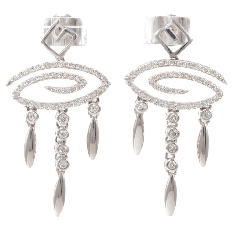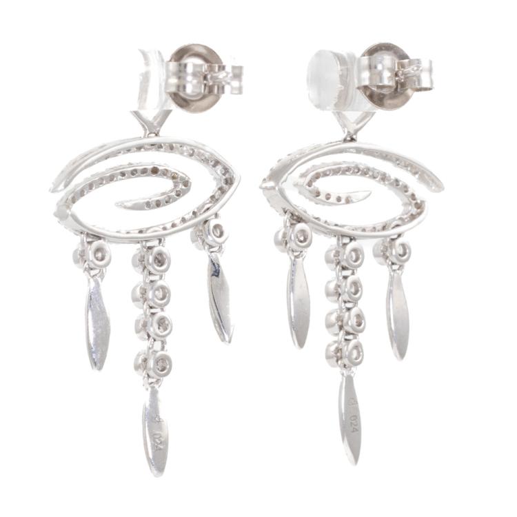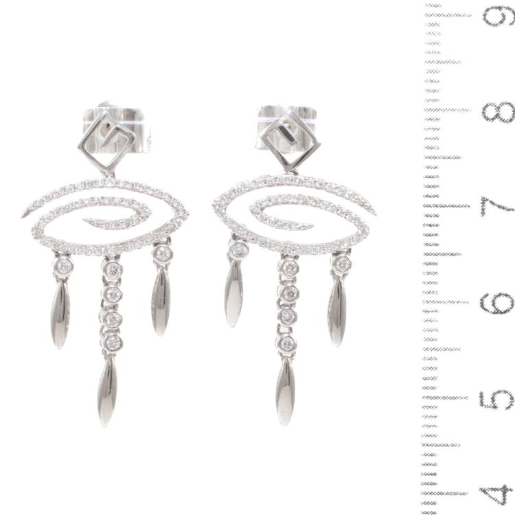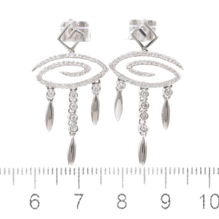 Diamond dangle earrings with round natural Diamonds totalling 0.47ct (Estimated grading: G-H SI). 18ct white gold. Weight: 5.2g. (As new)
