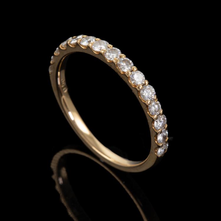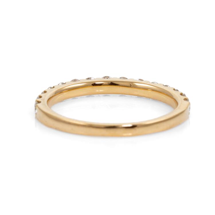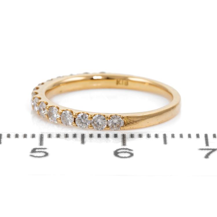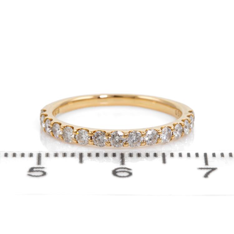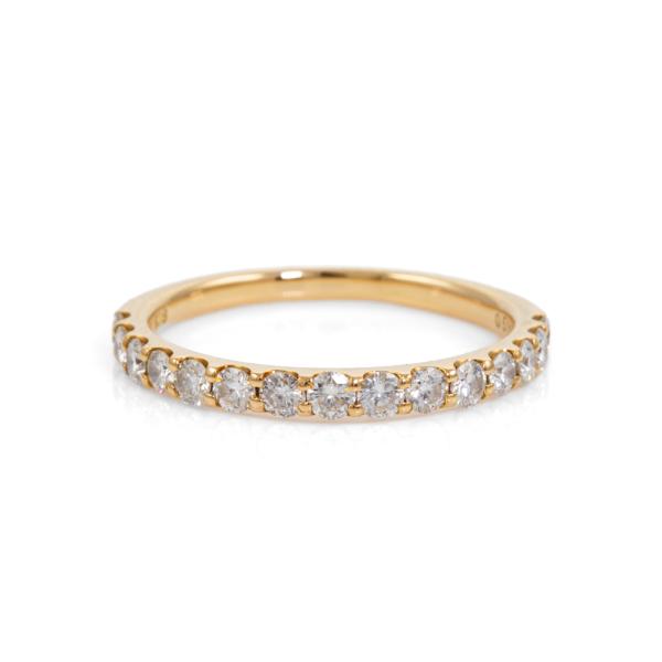 Diamond Half Hoop Eternity Ring with round Natural Diamonds totalling 0.50ct Estimated grading: IJ SI-P1. 18ct yellow gold. Ring size J. Resizing not recommended. Band width: 1.7mm - 1.9mm. Weight: 1.7g. (Pre-owned)