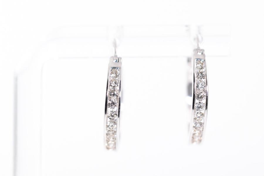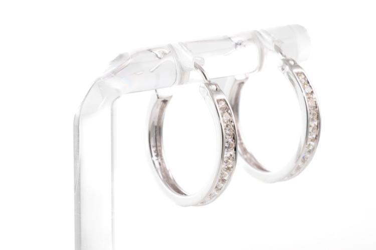 Diamond hoop earrings with 20 round Natural Diamonds totalling 0.52ct (Estimated grading: J SI). 14ct white gold. Weight: 3.4g. (New)