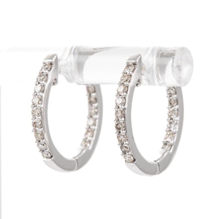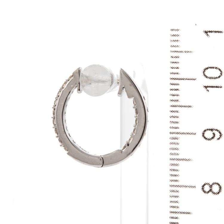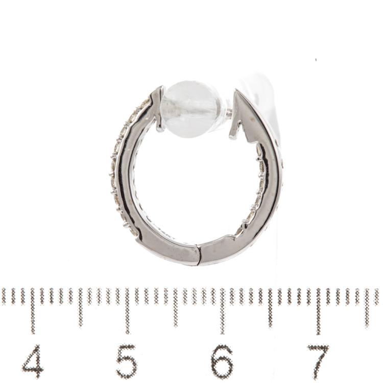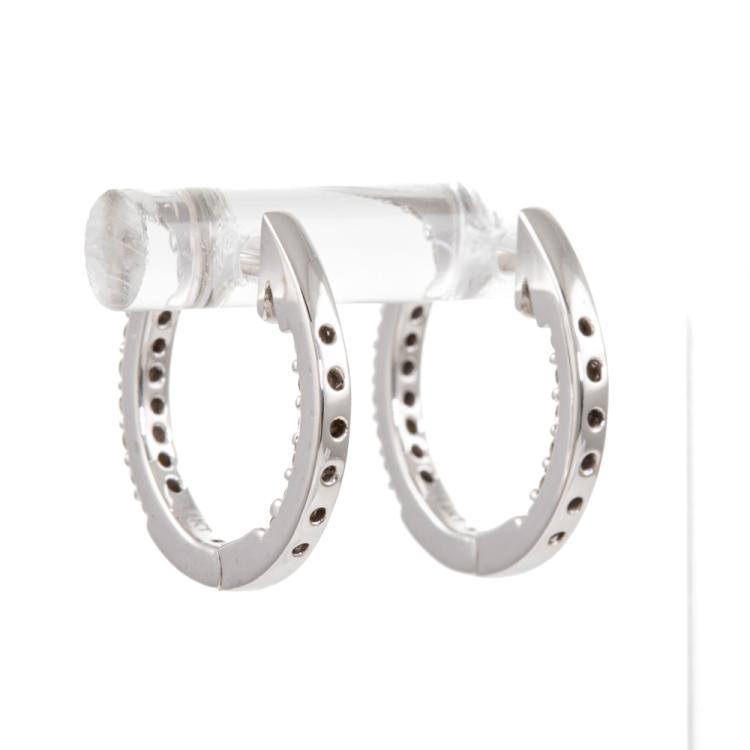 Diamond hoop earrings with 30 round Diamonds totalling 0.55ct (Estimated grading: I-J SI). Back of the hoop has the Diamonds set inside the hoop. 14ct white gold. Weight: 4.6g. (New)