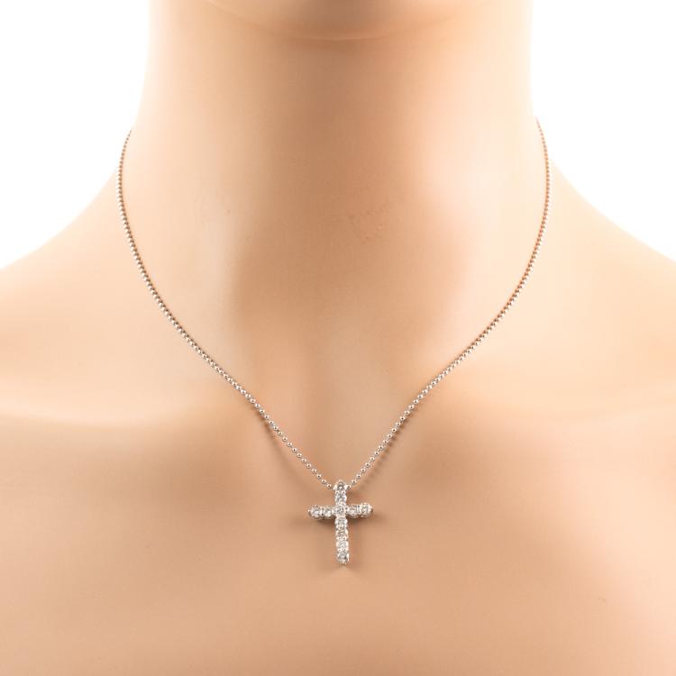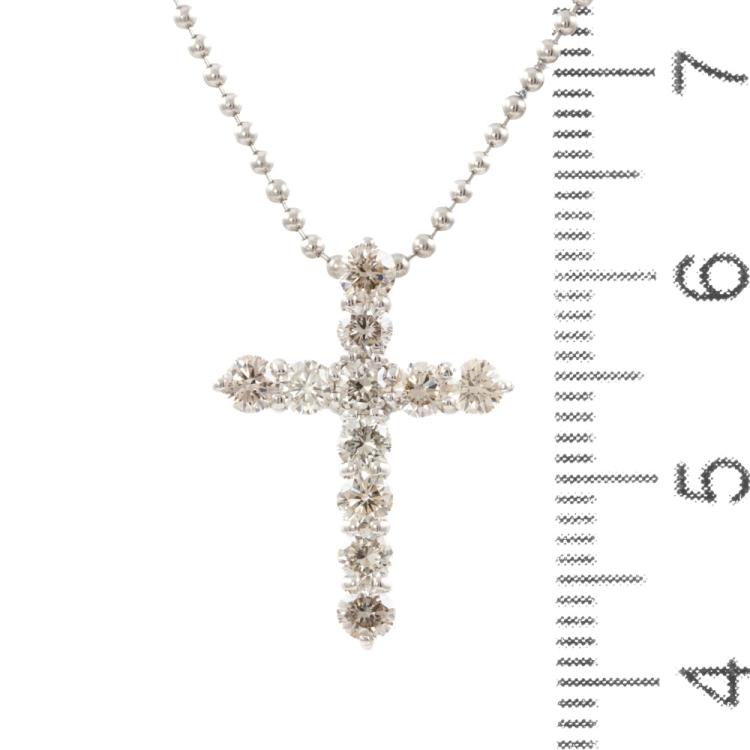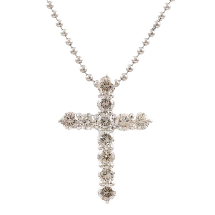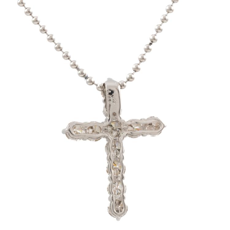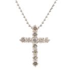 Diamond cross pendant with round Natural Diamonds totalling 0.90ct (Estimated grading: TTLB SI). Platinum 950 with platinum 850 chain. Length: 36.0 - max 40.0cm. Weight: 4.2g. (Pre-owned)