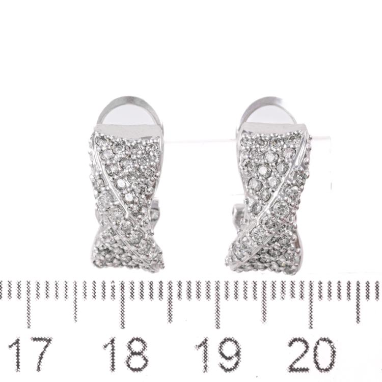 Diamond clip-on earrings (for pierced ears) with round Natural Diamonds totalling 1.00ct (Estimated grading: H SI). 18ct white gold. Weight: 7.9g. (Pre-owned)