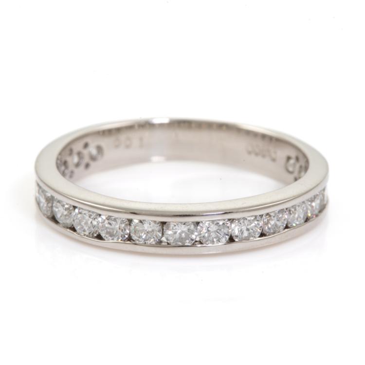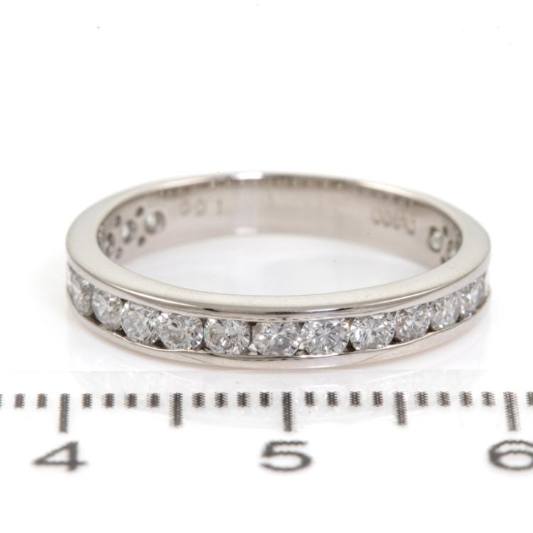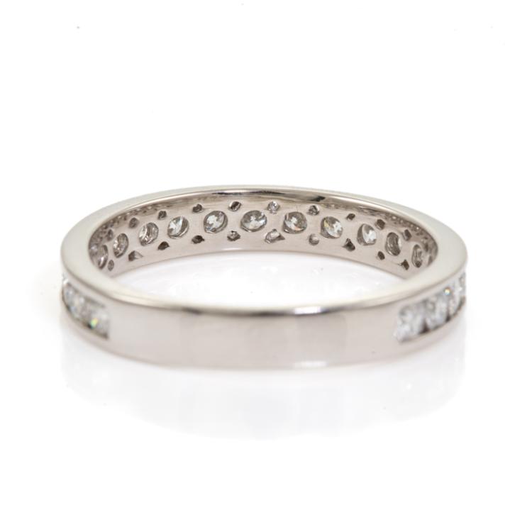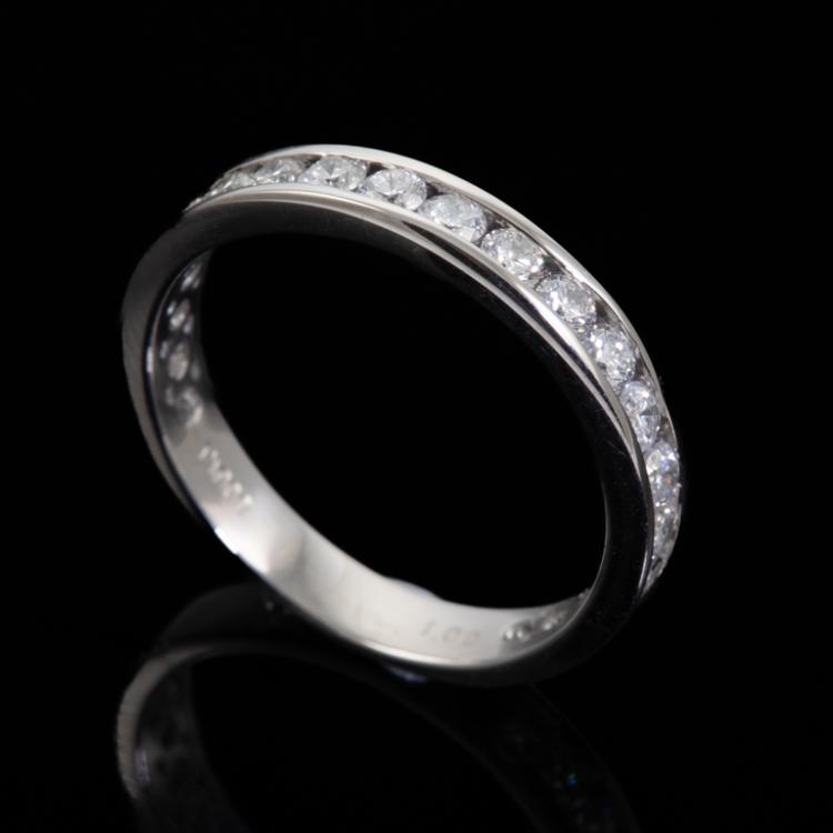 Diamond eternity ring with round Diamonds totalling 1.00ct (Estimated grading: G SI). Platinum - 900. Ring size L. Band width: 3.3mm. Weight: 3.4g. (Pre-owned)