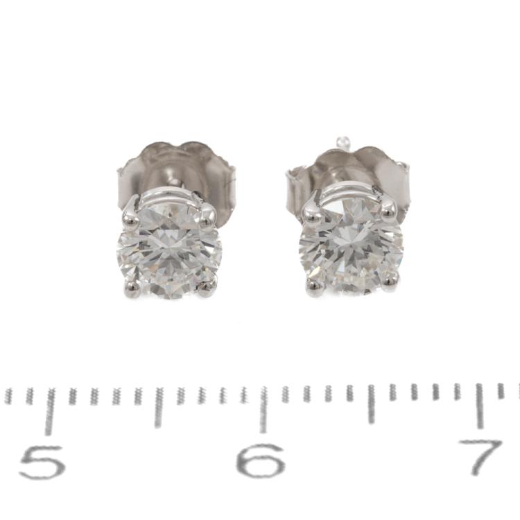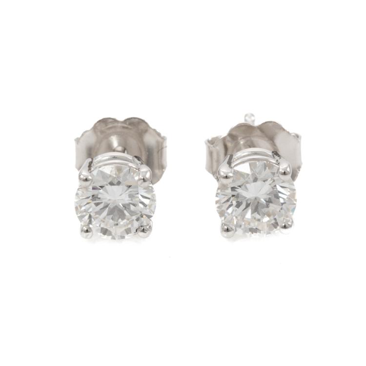 Diamond stud earrings with 2 round brilliant cut natural Diamonds totalling 1.00ct (both with GIA Summary Reports both graded as D Internally Flawless #6472737630, 2486315831). 18ct white gold. Weight 1.2g (New)