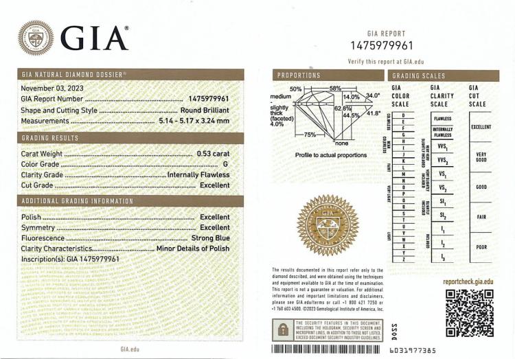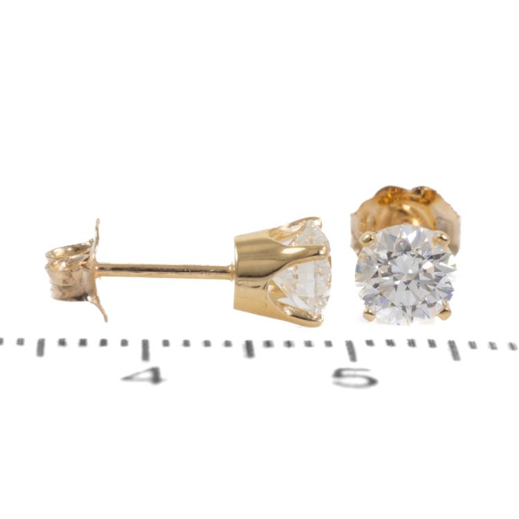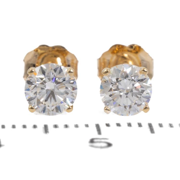 Diamond stud earrings with 2 round brilliant cut natural Diamonds totalling 1.07ct (both with GIA Summary Reports both graded as G Internally Flawless #1475979961, 5483042633). 18ct yellow gold. Weight 1.3g (New)
