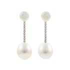 Pearl Earrings with drop shape South Sea Pearls of 11.0mm. 18ct white gold with silicon & 18ct white gold backs. Weight: 5.7g. (Pre-owned)