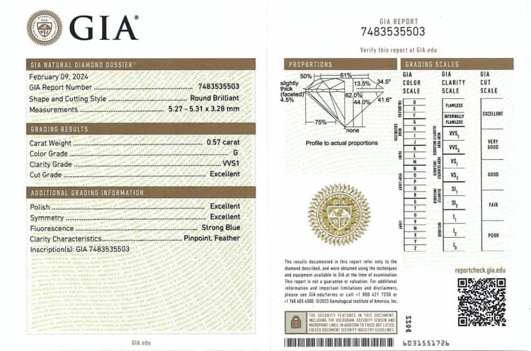 Diamond stud earrings with 2 round brilliant cut Natural Diamonds totalling 1.17ct (with GIA Summary Reports graded as G VVS1 #6471292772, 7483535503). 18ct yellow gold. Weight: 1.5g. (New)