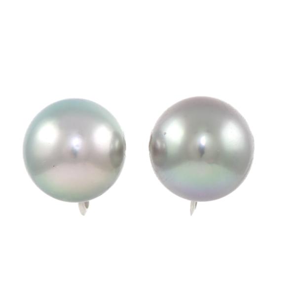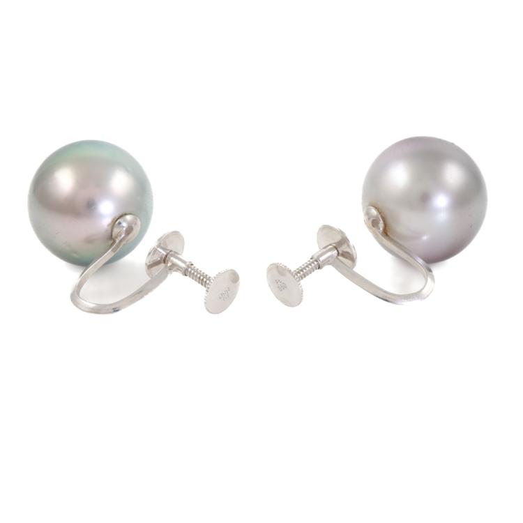 Screwback clip on earrings (for non pierced ears) with Tahitian Pearl of 13.1mm & 13.4mm. Platinum - 850. Weight: 8.3g. (Pre-owned)