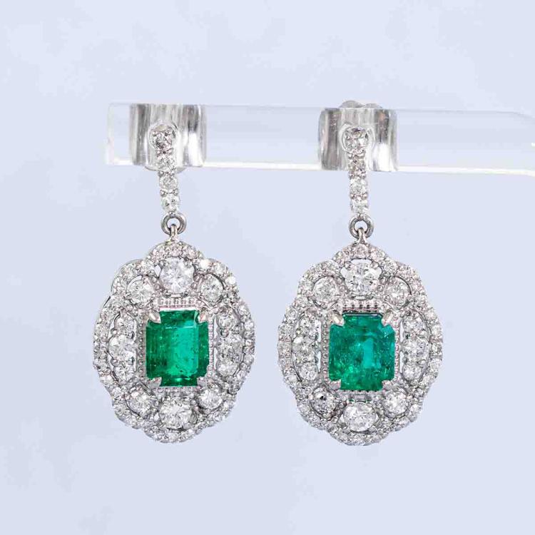 1.38ct Emerald and Diamond Earrings