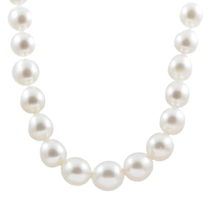 Autore Pearl necklace with 33 graduated oval shape South Sea Pearl necklace. 18ct yellow gold 10mm ball clasp. Length: 46cm. Weight: 87.7g. With Autore Certificate # N-2312-030. (As New)