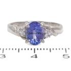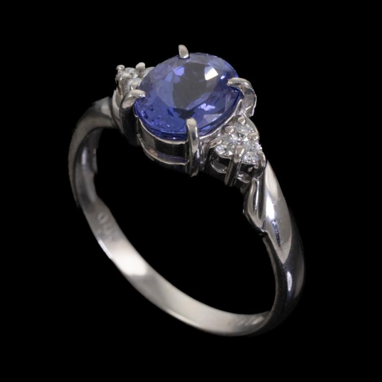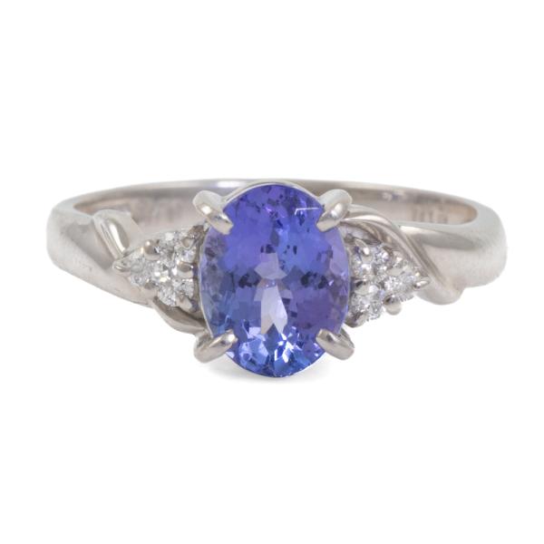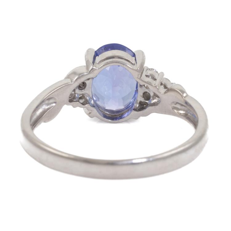 Tanzanite and Diamond ring with oval Natural Tanzanite of 1.40ct and round Natural Diamonds totalling 0.10ct. Platinum 900. Ring size L1/2. Band width: 2.20mm - 3.00mm. Weight: 4.0g. (Pre-owned)