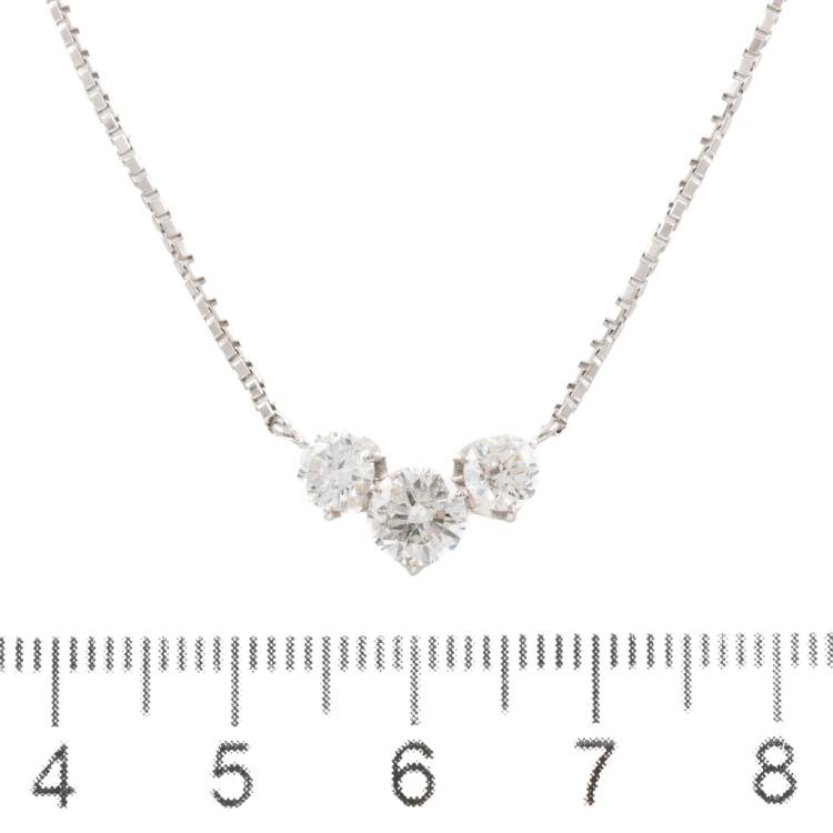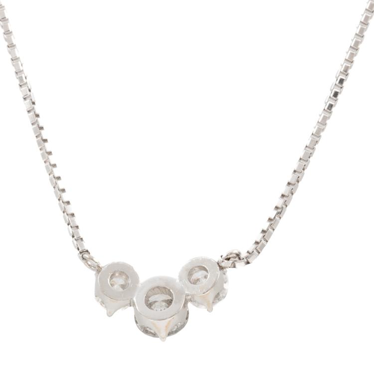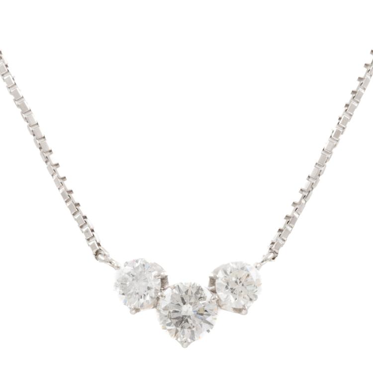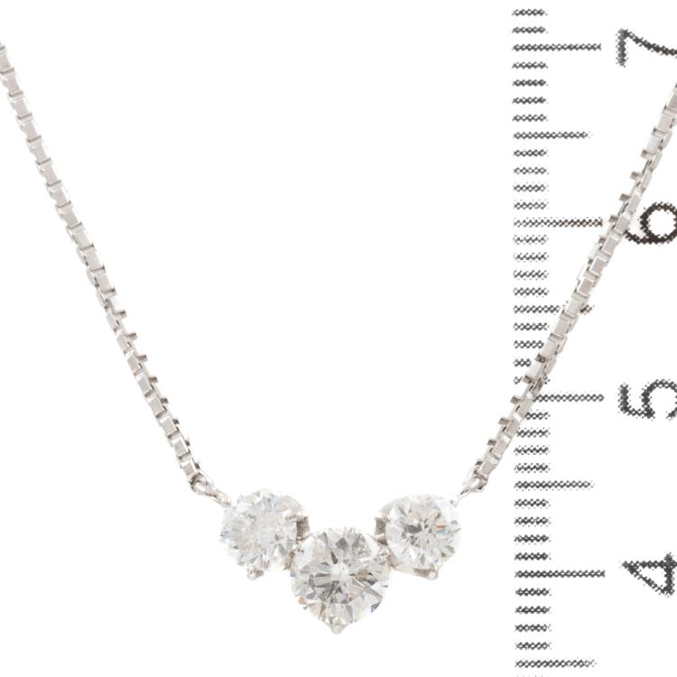 Diamond dress necklace with 3 round brilliant cut Natural Diamonds totalling 1.47ct (Estimated grading: GHI P1). Platinum 850 with platinum 850 chain attached. Length: 38.0cm - max 41.0cm. Weight: 7.0g. (Pre-owned)