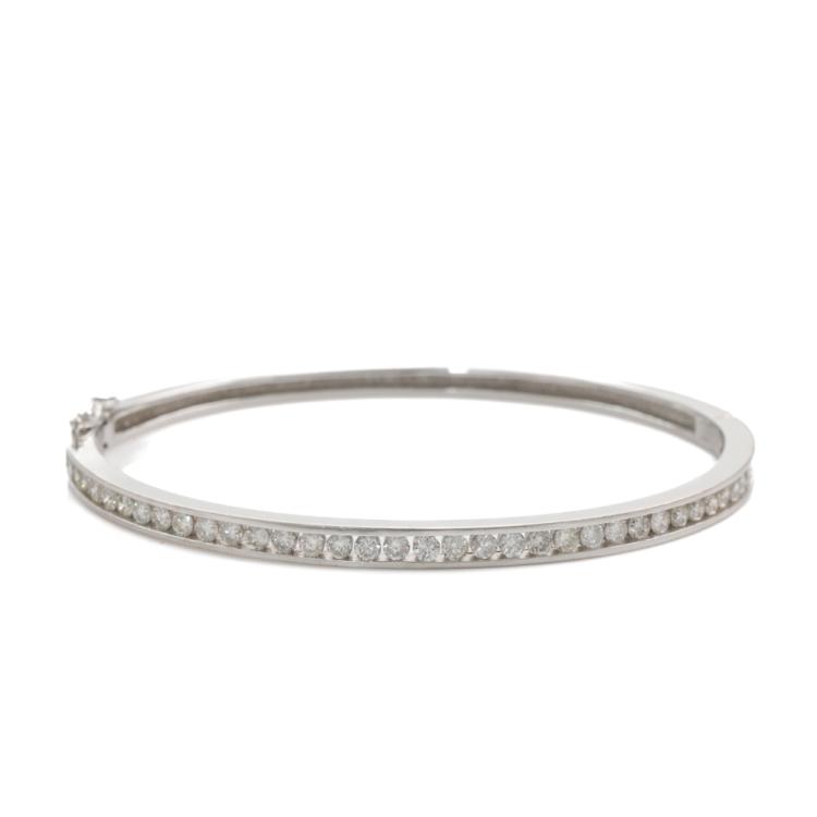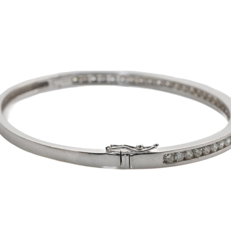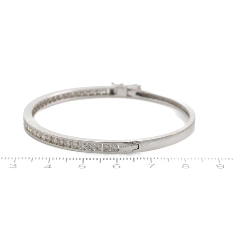 Diamond oval shape bangle with round Natural Diamonds totalling 2.00ct (Estimated grading: I-J SI-P1). 18ct white gold. Inner circumference: 16.5cm. Weight: 15.4g. (Pre-owned)