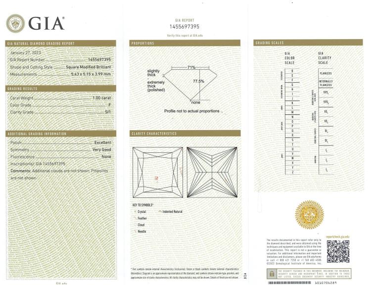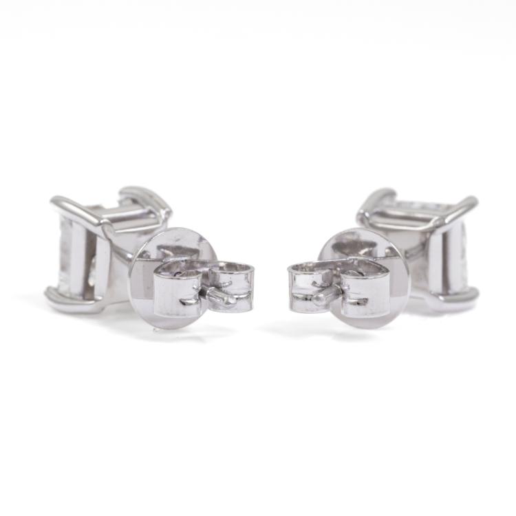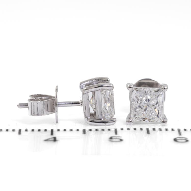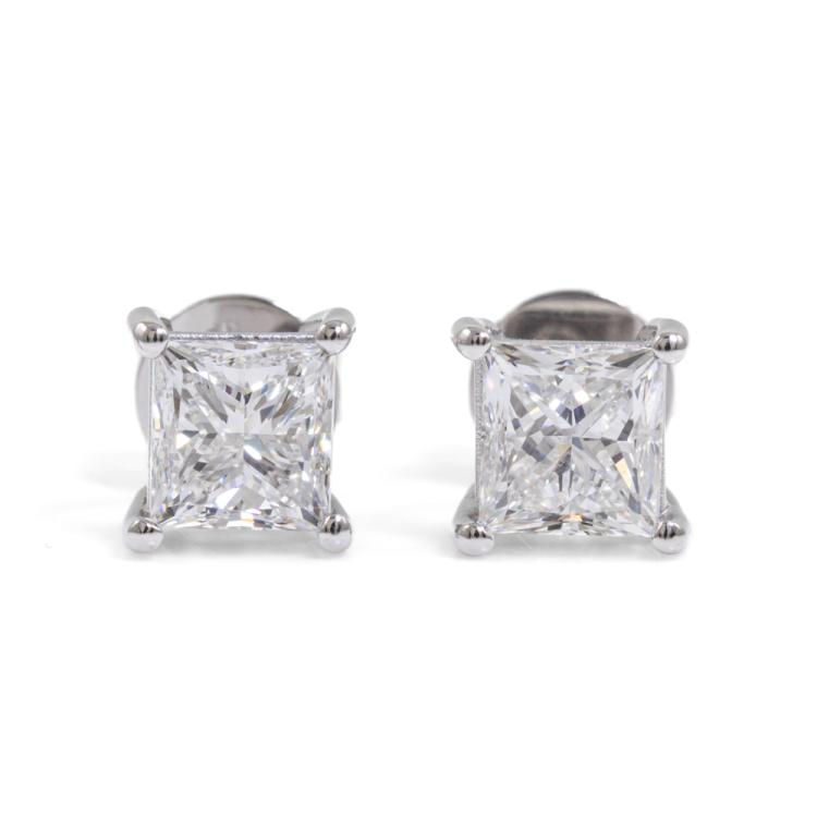 Diamond stud earrings with 2 princess cut natural Diamonds totalling 2.00ct (both with GIA Reports graded as F VS2 and F SI1 #6485934799, 1455697395). 18ct white gold. Weight 3.0g. (New)