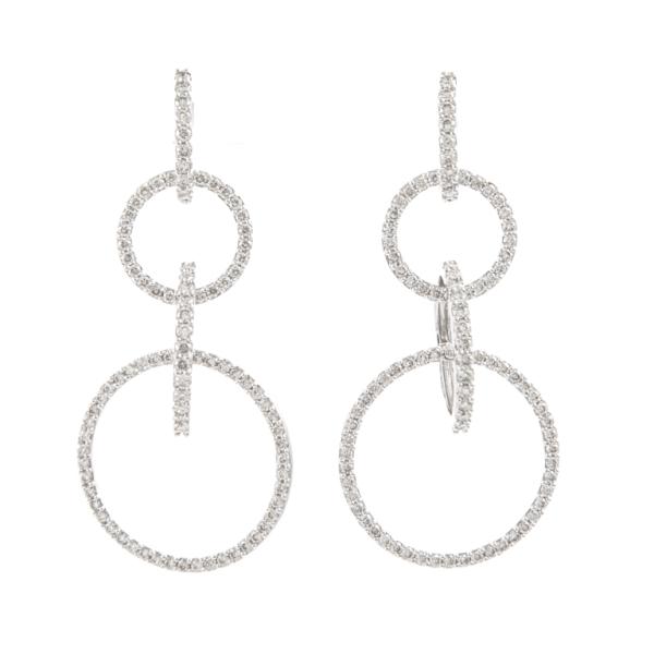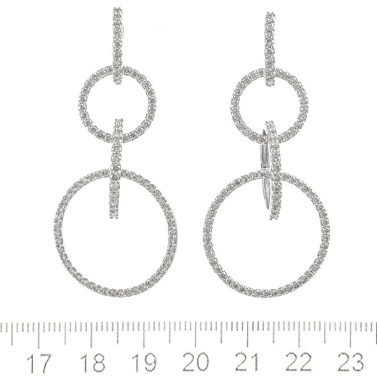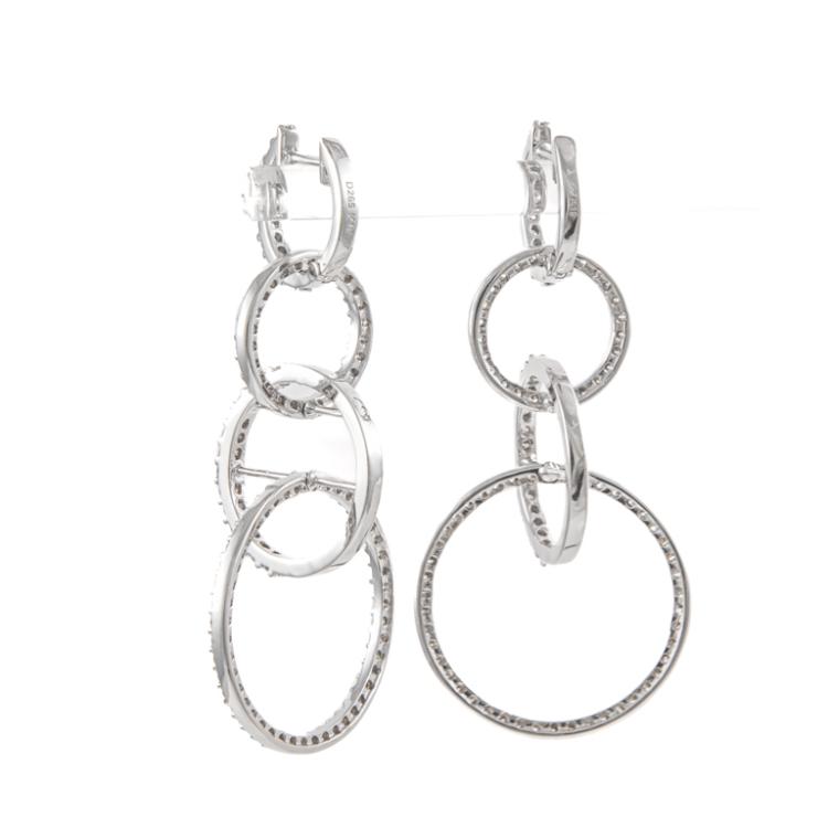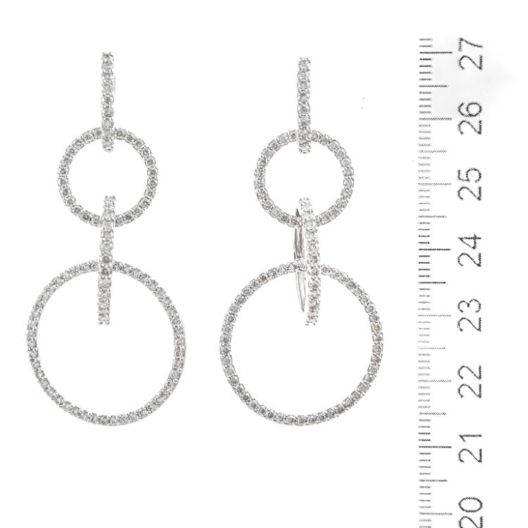 Diamond drop earrings comprised of 4 hoops each with round Natural Diamonds totalling 2.65ct (Estimated grading: I-J VS-SI). 18ct white gold. Drop length: 5.2cm. Weight: 14.4g. (Pre-owned)