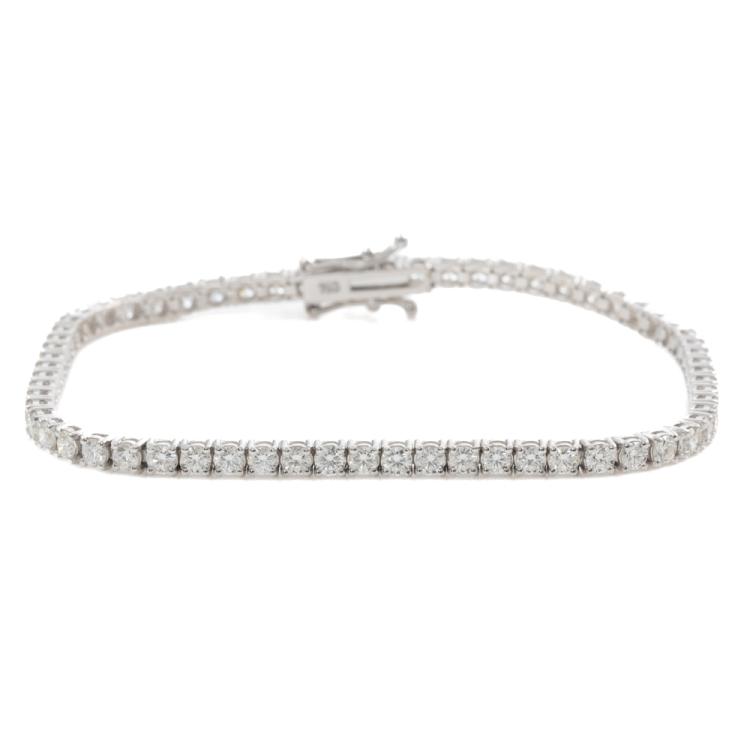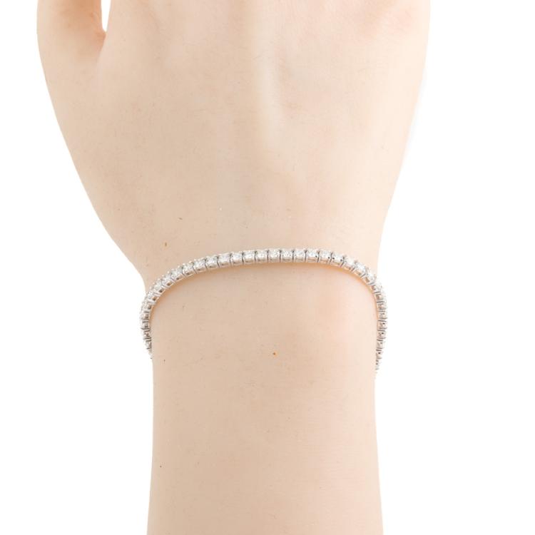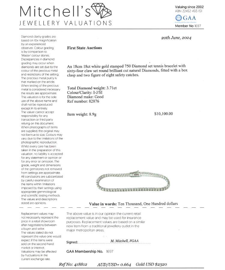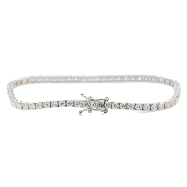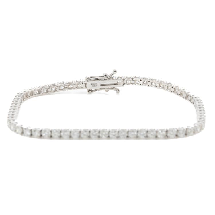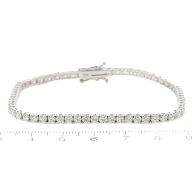 Diamond tennis bracelet with 64 round natural Diamonds Totalling 3.71ct (Estimated grading: I-J SI). 18ct white gold. Length: 18cm. Weight: 8.9g. With Valuation Certificate #418812. (New)