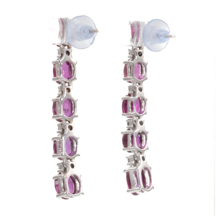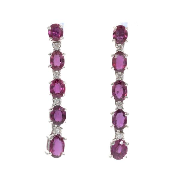 Ruby and diamond earrings with oval Natural Rubies totalling 3.76ct and round Natural Diamonds totalling 0.14ct . 18ct white gold with silicon backings. Weight: 3.9g. (Pre-owned)