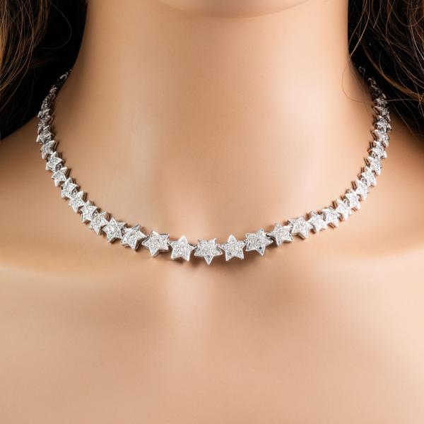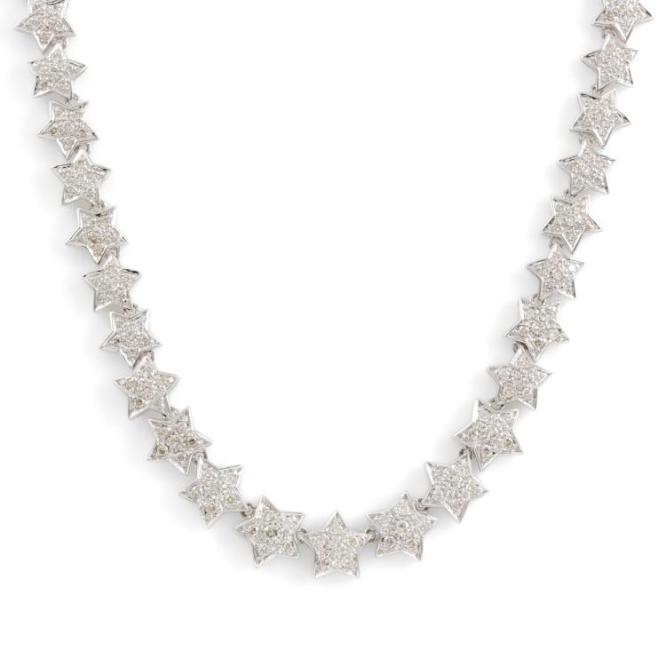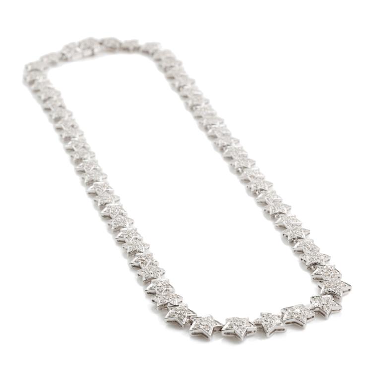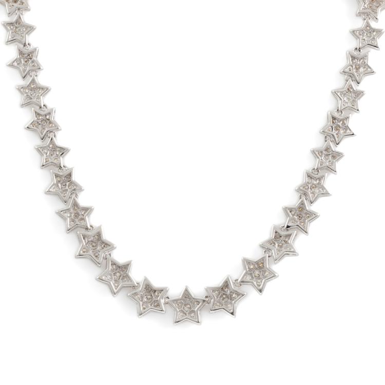 Diamond necklace with round Natural Diamonds totalling 5.00ct (Estimated grading: I-J SI). 18ct white gold. Length: 42.0cm. Weight: 34.8g. Stamped ' Show Yamagata'. With Valuation Certificate #418489 (Pre-owned)