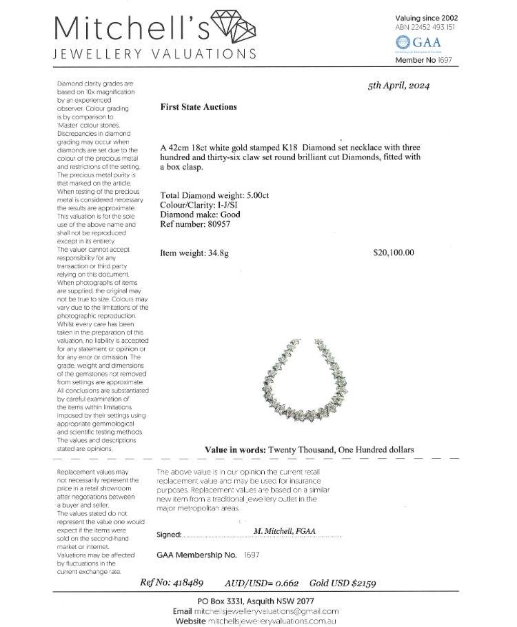 5.00ct Diamond Necklace 18ct Gold 34.8g
