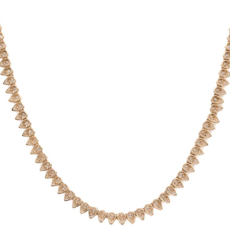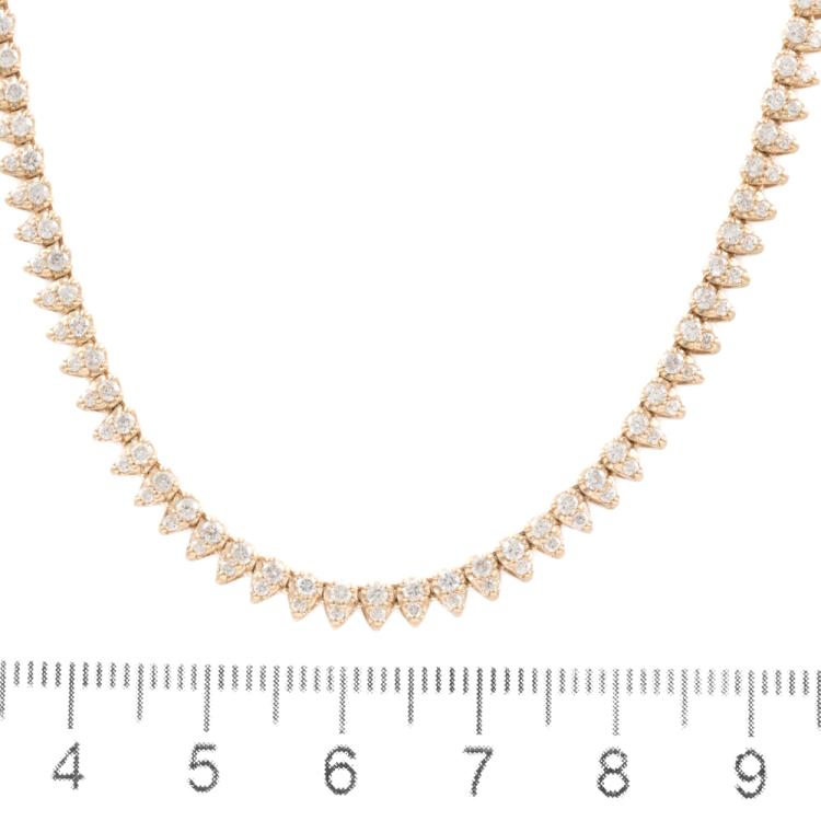 Opera length Diamond necklace with round Natural Diamonds totalling 7.00ct (Estimated grading: H-I SI). 18ct yellow gold. Length: 75cm. Weight: 21.8g. With Certificate #418799. (Pre-owned)