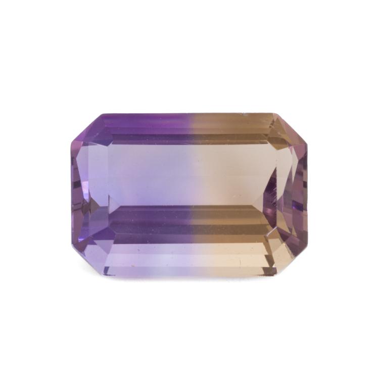 A parcel of loose emerald cut natural Ametrine of 7.07ct. Size: 14.08 x 10.06 x 6.97mm. (As new)