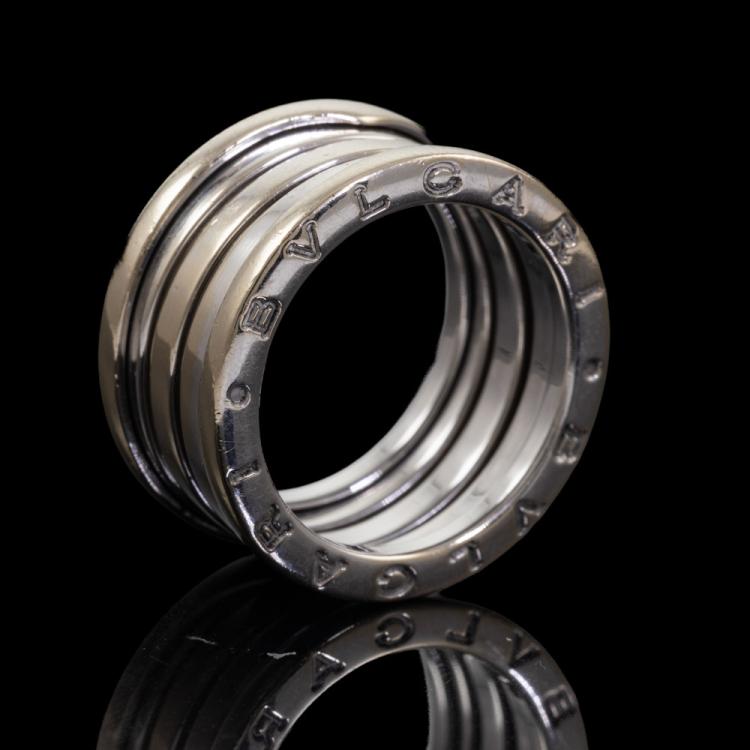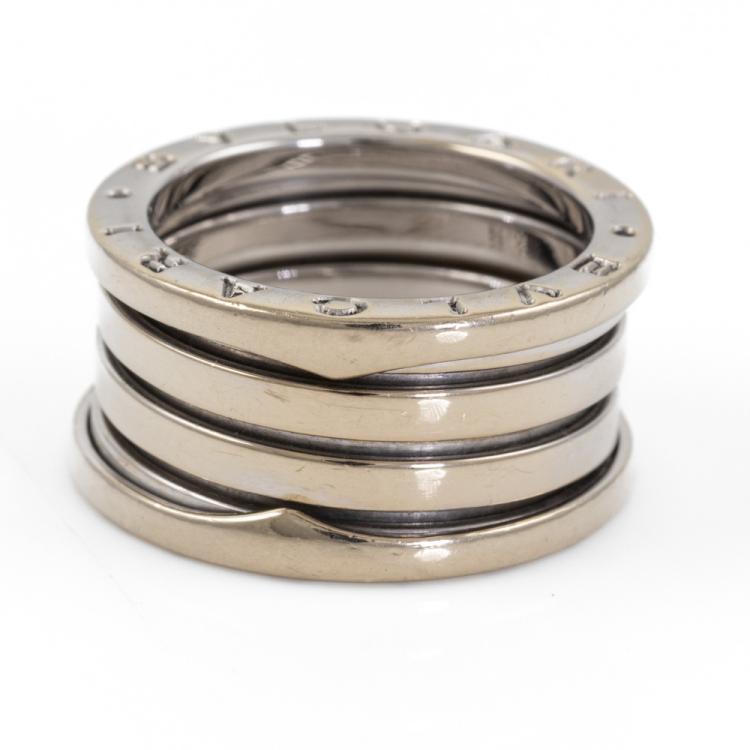 Bvlgari B.Zero1 four-band ring. 18ct white gold. Bvlgari stamped size 54, actual size M1/2 - ring resizing is not recommend. Band width: 11mm. Made in Italy. Weight: 10.5g. With Bvlgari box. (Pre-owned)