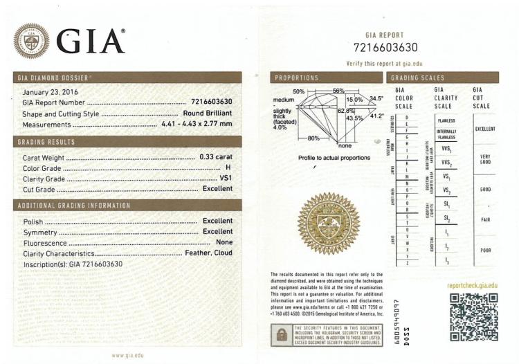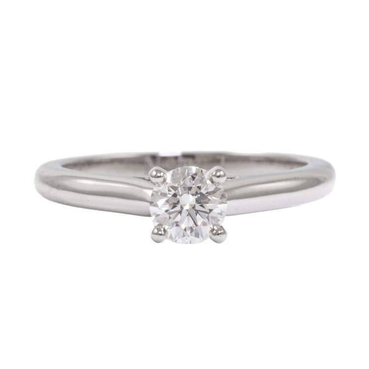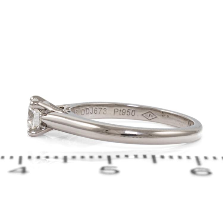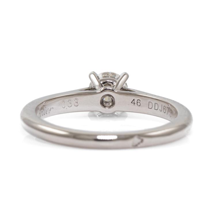Cartier Solitaire 1895 ring with a round brilliant cut Natural Diamond of 0.33ct (GIA# 7216603630 graded as H VS1). Platinum 950. Cartier Stamped size 46, G1/2 - ring resizing is not recommended. Band width: 1.6mm-2.1mm. Weight: 3.3g. With Cartier Authenticity Certificate dated 02/09/16 and Cartier box. (Pre-owned)