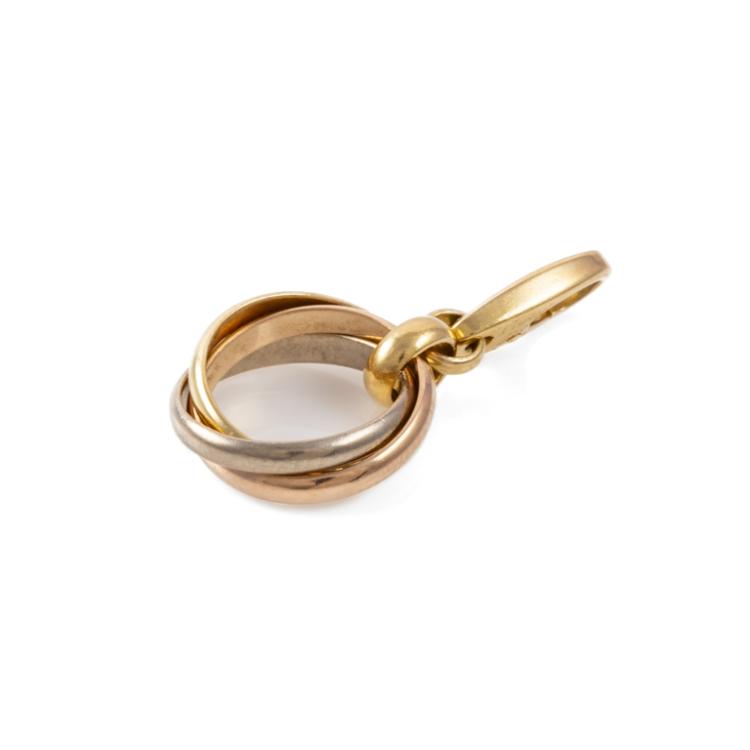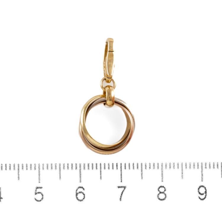 Cartier Trinity small model pendant charm. 18ct yellow, rose & white gold. No chain provided. Inner diameter: 11.5mm. Weight: 3.5g. With Cartier Certificate dated 30/09/06 and Cartier box (Note: outer box only). (Pre-owned)