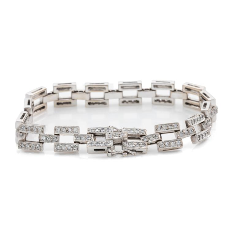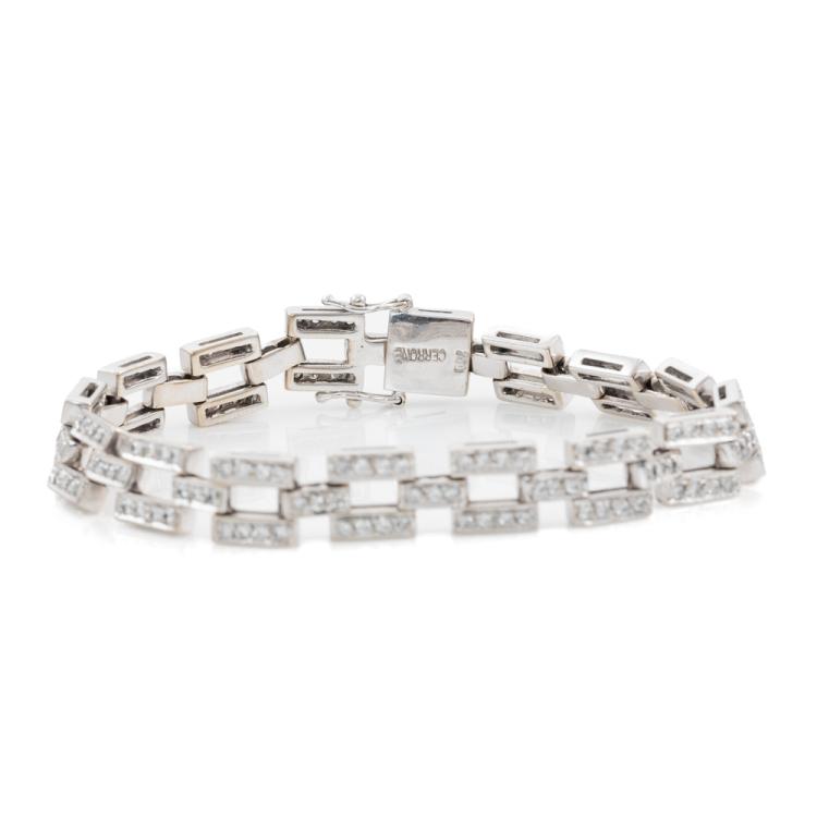 Cerrone Diamond bracelet with round Natural Diamonds totalling approximately 1.70ct (Estimated grading: G-H VS-SI). 18ct white gold. Length: 17cm. Width: 7.8mm. Weight: 21.1g. (Pre-owned)