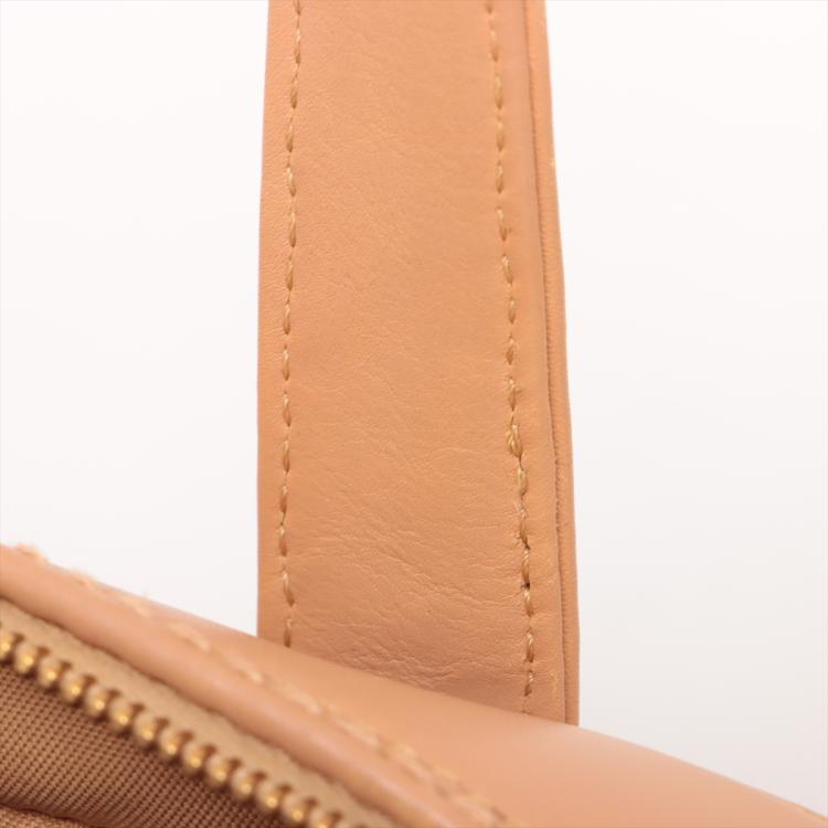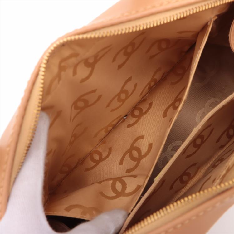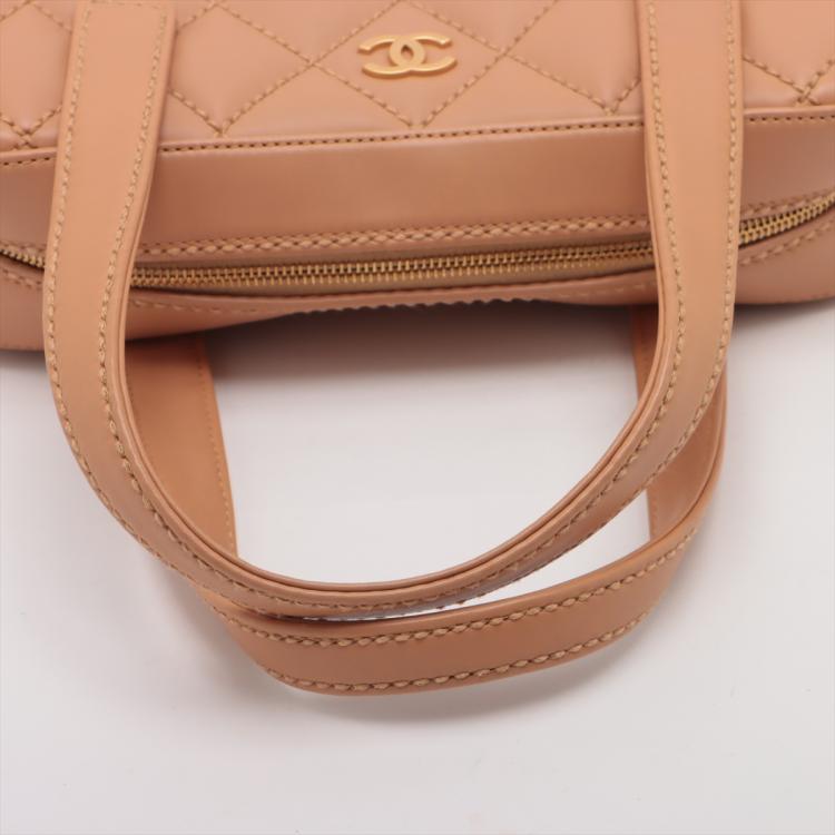 Chanel Wild Stitch tote bag in beige lambskin leather. Featuring signature Wild Stitch quilting, interlocking CC logo, an exterior pocket at back, two top handles, and gold metal hardware. The top zipper closure opens to a beige Chanel print interior with a patch pocket, a zipper pocket. Approximate dimensions: 29cm(L) x 19.5cm(H) x 11cm(D), handle drop 16cm. Accompanied by a detachable Chanel internal pouch. With Entrupy Certificate of Authenticity. (Pre-owned)