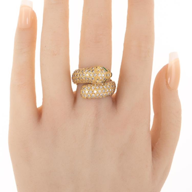 Emerald and Diamond Panther Design Ring