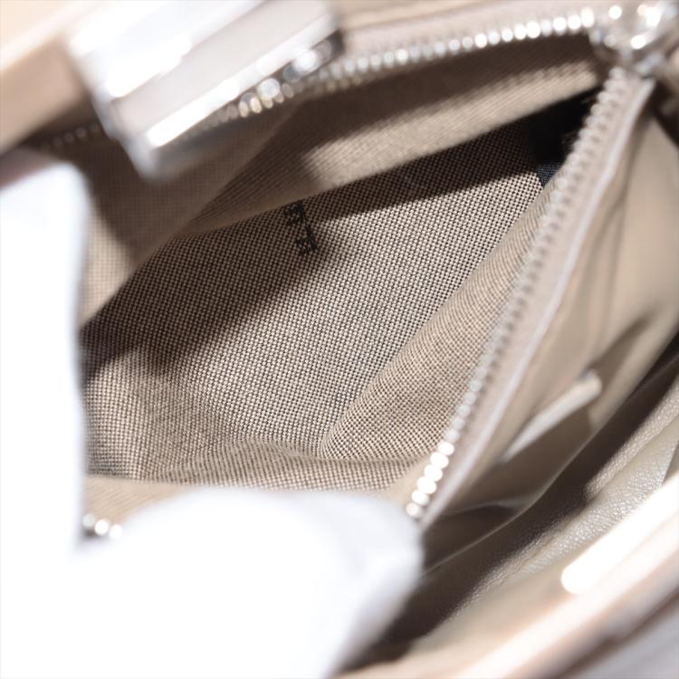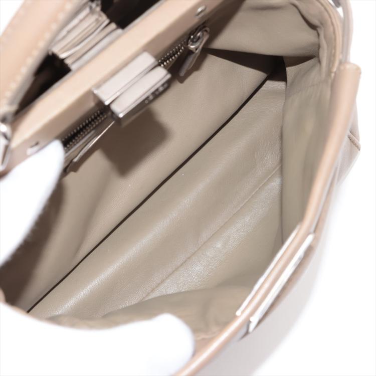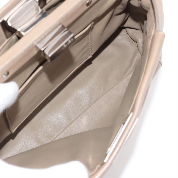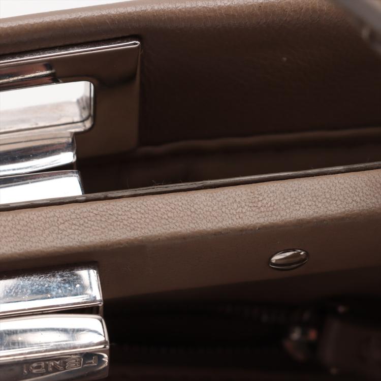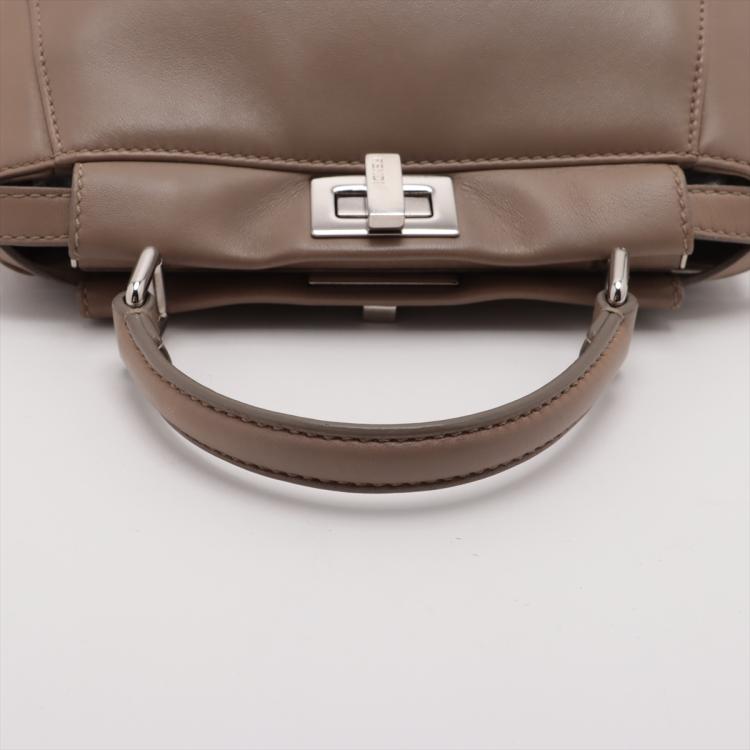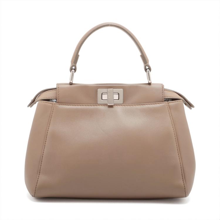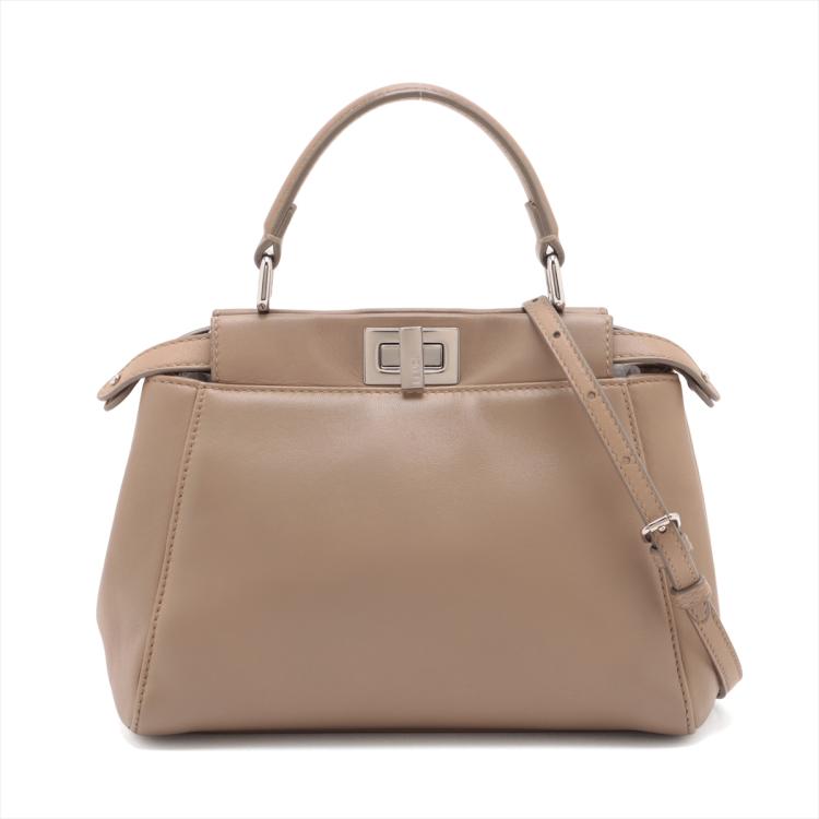 Fendi mini Peekaboo 2Way bag in beige Nappa leather. Featuring silver-tone hardware, single leather handle, turn-lock closures at front and back. The top opens to two compartments lined in colour matching Nappa leather and with zipped and patch pockets. Approximate dimensions: 23cm(L) x 18cm(H) x 11cm(D), handle drop: 9.5cm, detachable strap drop: 65cm. With Entrupy Certificate of Authenticity. (Pre-owned)