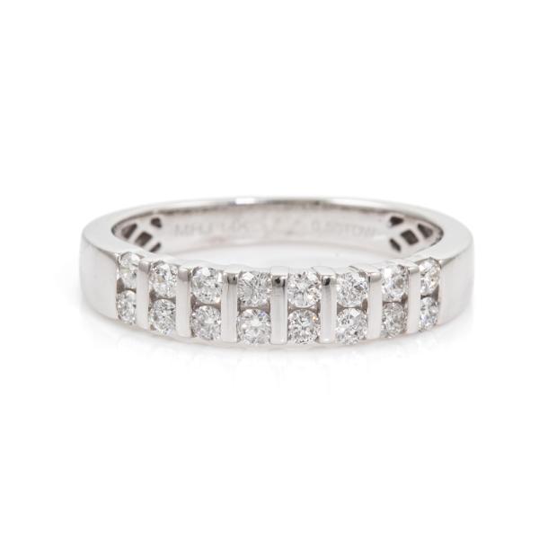 Michael Hill Diamond ring with round Natural Diamonds totalling approximately 0.50ct (Estimated grading H SI). 14ct white gold. Ring size: Q. Band width: 3.6mm - 2.8mm. Weight: 3.7g. (Pre-owned)