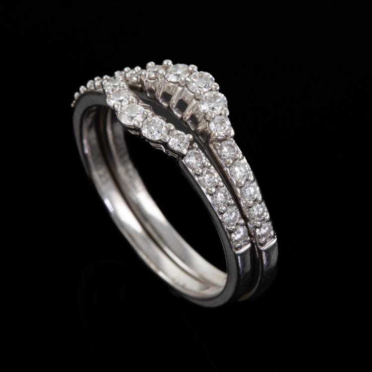 A Pair of Michael Hill Half Hoop Diamond eternity rings with round Natural Diamonds totalling 0.50ct. (Estimated grading: I-J SI.) 18ct white gold. Ring size: K. Band width: 1.60mm - 1.75mm. Weight: 3.7g. (Pre-owned)