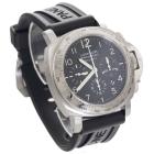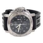 Panerai Luminor Daylight stainless steel automatic mens watch. Black chronograph dial, date, case diameter: 44mm, strap length: 21.5cm, Swiss made. Ref# PAM00196/OP6637. With Panerai black rubber strap and buckle. With Certificate of Authenticity and Panerai case. 3 month FSA warranty. (Pre-owned)