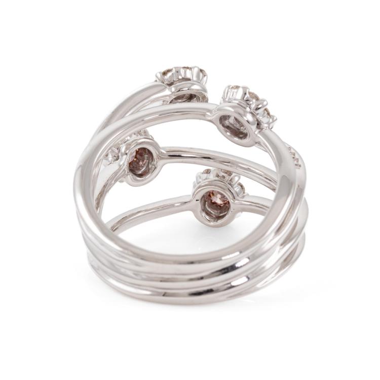 Diamond flower designed dress ring with 4 round natural Pink Diamonds totalling approximately 0.24cts (Estimated grading: Fancy Deep Purplish Pink SI) and round natural White Diamonds totalling approximately 0.56cts (Estimated grading: H-I SI). 18ct white and yellow gold. Ring size O 1/2 - ring resizing is not recommended. Band width: 6.0 - 7.5mm. Weight: 10.2g. With Valuation Certificate #418718. (Pre-owned)