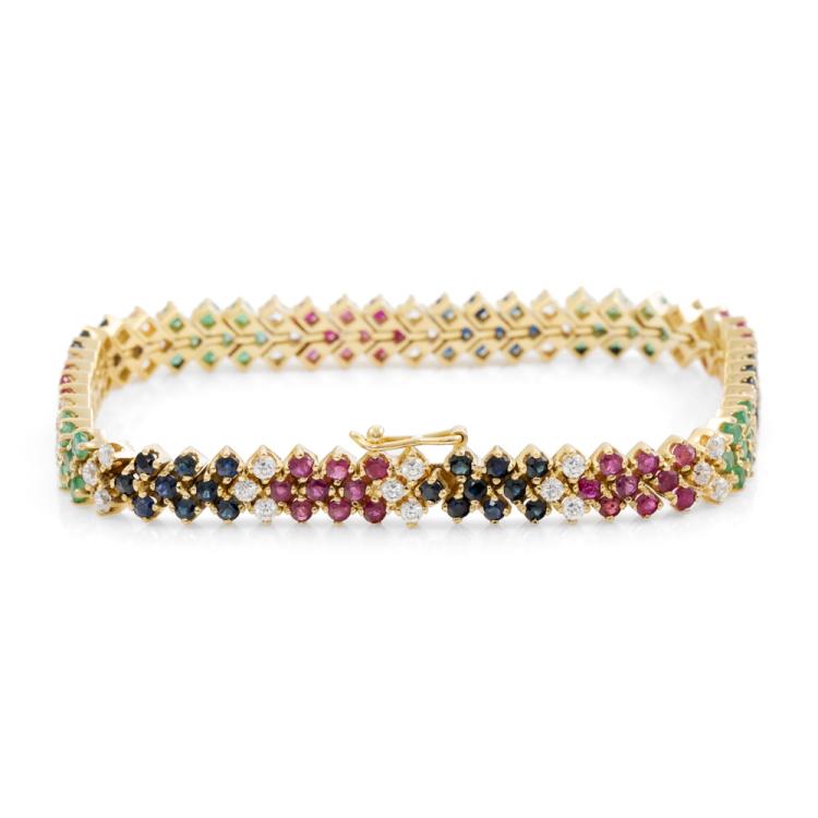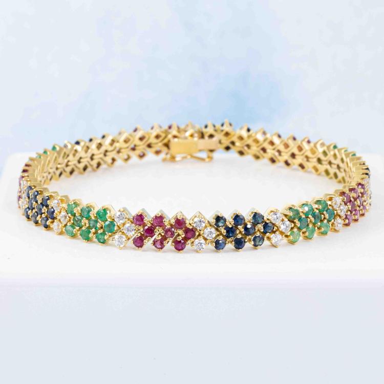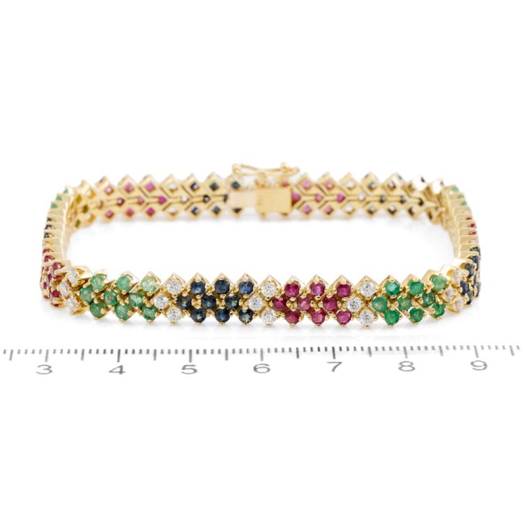 Ruby, Sapphire, Emerald & Diamond Bracelet