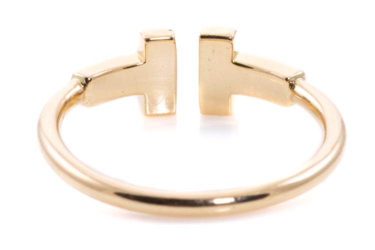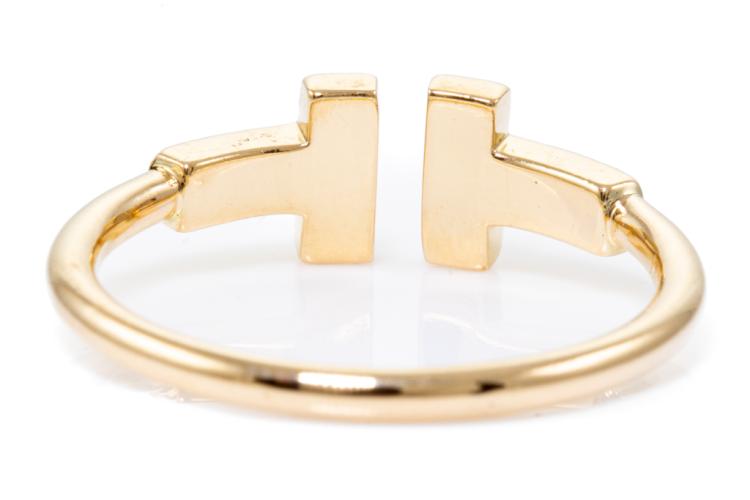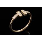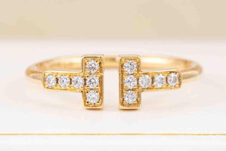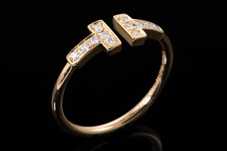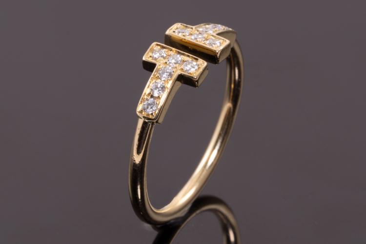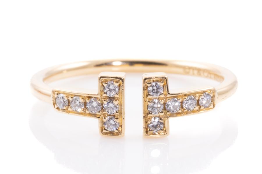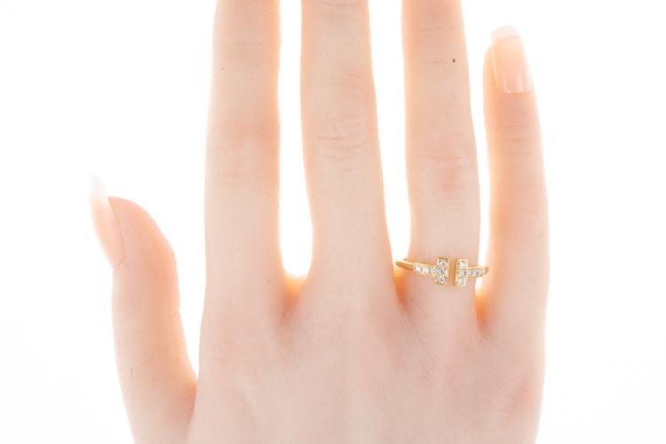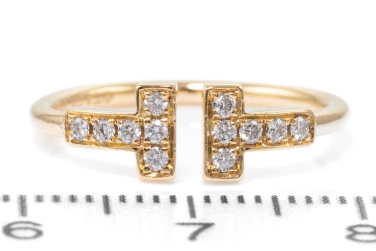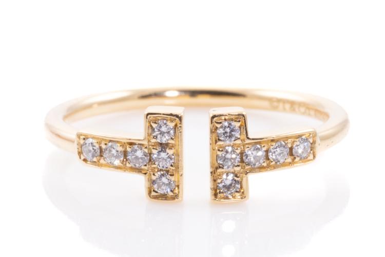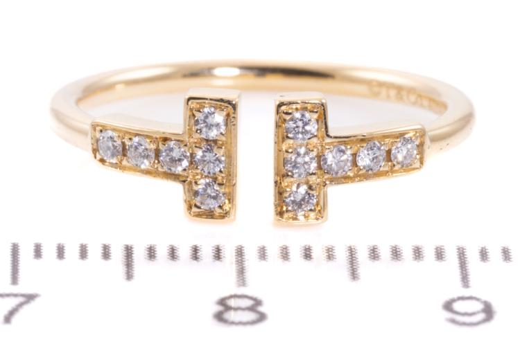 Tiffany & Co T Diamond Wire Ring with 12 round Natural Diamonds totalling 0.13ct. 18ct yellow gold. Made in Italy. Ring size L. Weight: 2.4g. (Pre-owned)