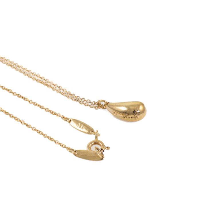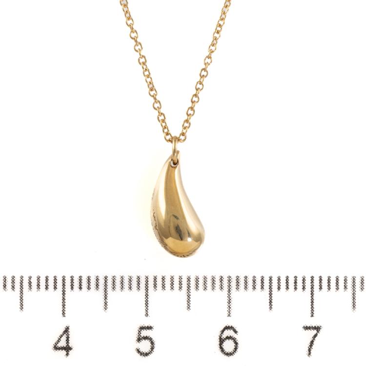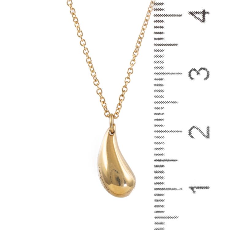 Tiffany & Co Elsa Peretti Teardrop pendant. 18ct yellow gold with 18ct yellow gold Tiffany & Co 40cm chain. Motif size: 12.9mm. Weight: 4.7g. With Tiffany & Co box. (Pre-owned)