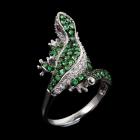 Tsavorite, Ruby and Diamond ring with round Natural Tsavorite (Green Garnet) totalling 1.32ct, round Natural Rubies totalling 0.03ct and round Natural Diamonds totalling 0.63ct (Estimated grading: G-H SI). 18ct white gold. Ring size Q1/2. Band width: 2.5mm - 3.8mm. Weight: 10.7g. With Certificate #417858. (Pre-owned)