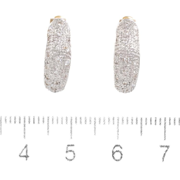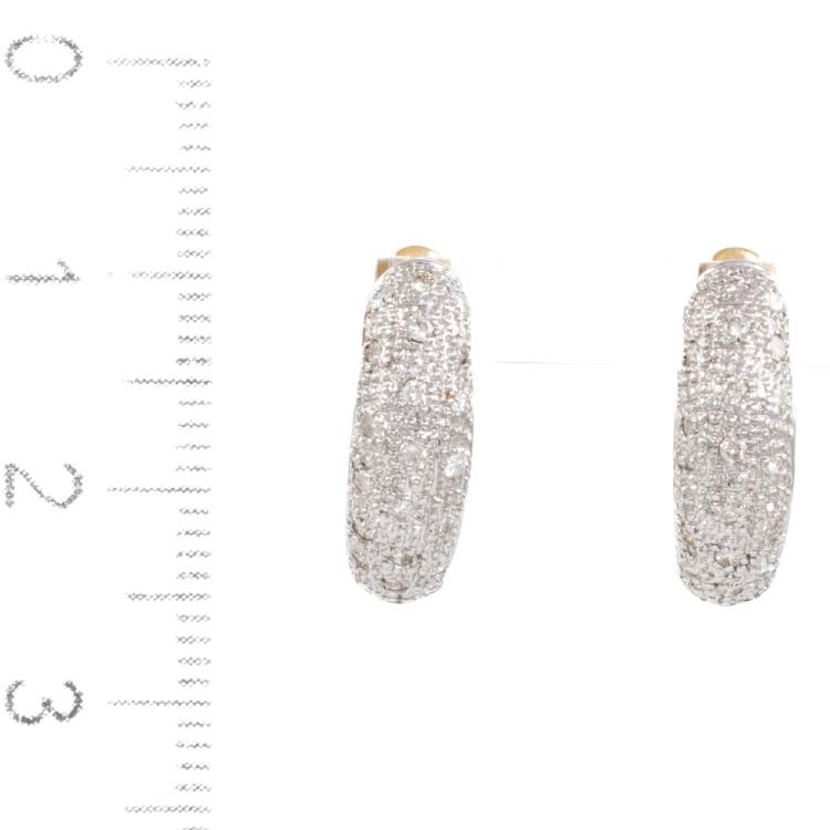 Diamond hoop earrings with round natural Diamonds totalling 0.40ct (Estimated grading: J SI). 18ct yellow & white gold. Weight: 5.4g. (As new)