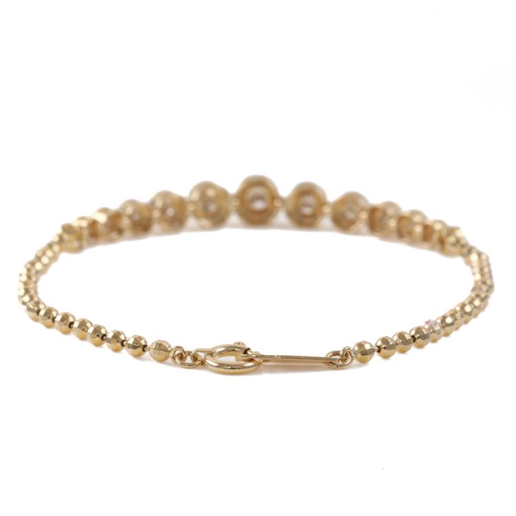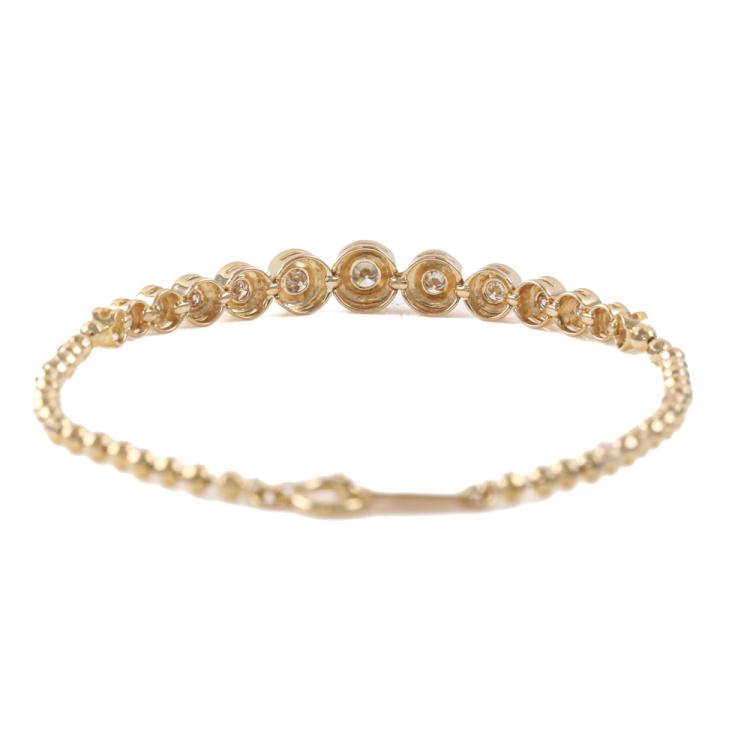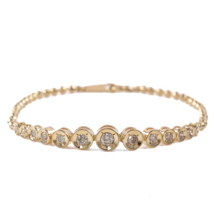 Diamond bracelet with 13 graduate round Natural Diamonds totalling 0.50ct (Estimated grading: J-K SI-P1). 18ct yellow gold. Length: 18cm. Weight: 5.5g. (Pre-owned)