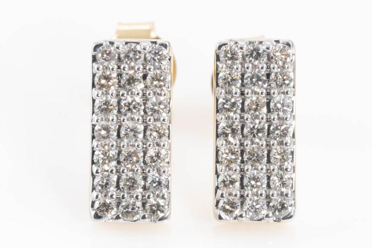 Diamond earrings with 42 round diamonds totalling 0.51ct. (Estimated grading: H-I SI). 14ct yellow gold. Weight: 2.5g. (New)