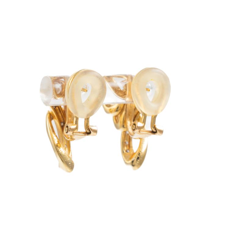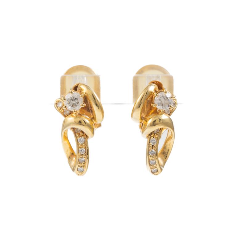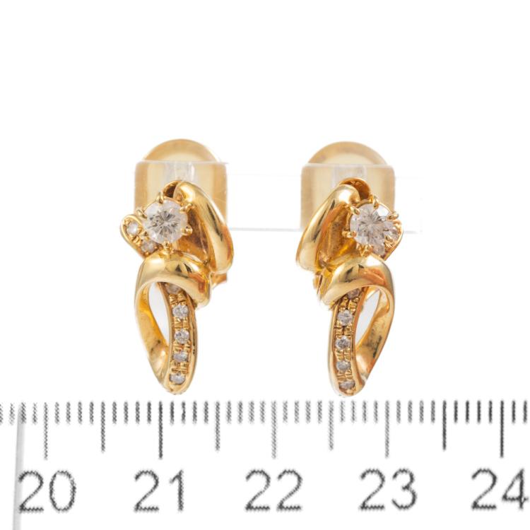 Diamond clip-on earrings (for pierced ears) with round natural Diamonds totalling 0.56cts (Estimated grading: H-I SI). 18ct yellow gold with silicon comfort backs. Weight:7.1g. (Pre-owned)