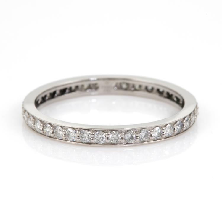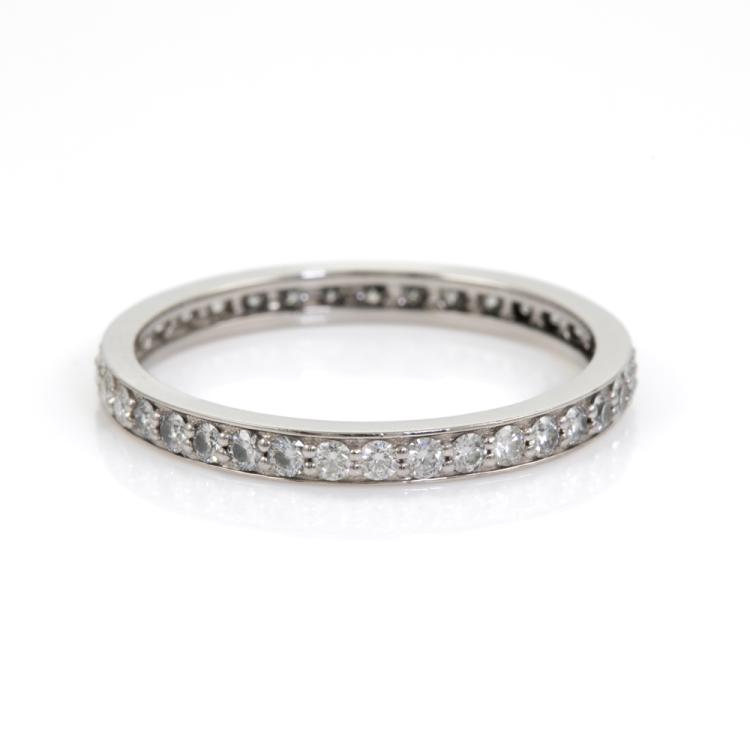 Diamond full eternity ring with natural Diamonds totalling 0.60ct (Estimated grading: H SI). Platinum 950. Ring size Q. Band width: 2.3mm. Weight: 2.8g. (Pre-owned)