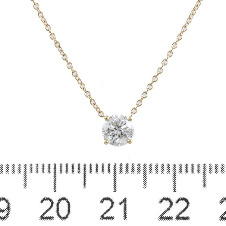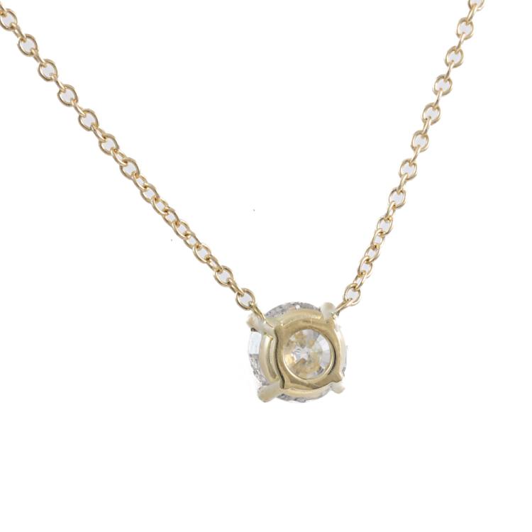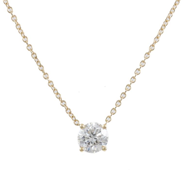 Diamond solitaire pendant with a round brilliant cut Natural Diamond of 0.60ct (Estimated grading: H-I P1) 18ct yellow gold. Length 41cm. Weight 1.4g (New)
