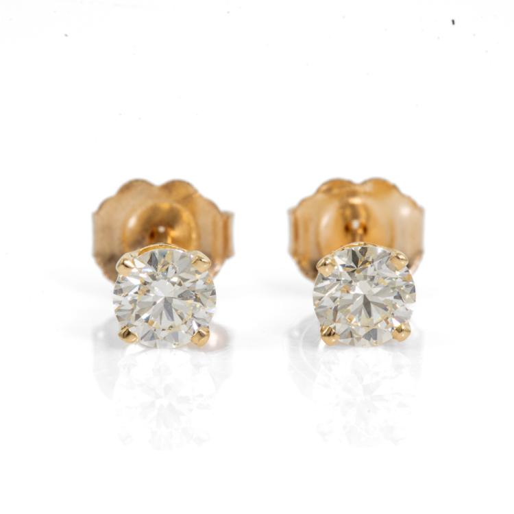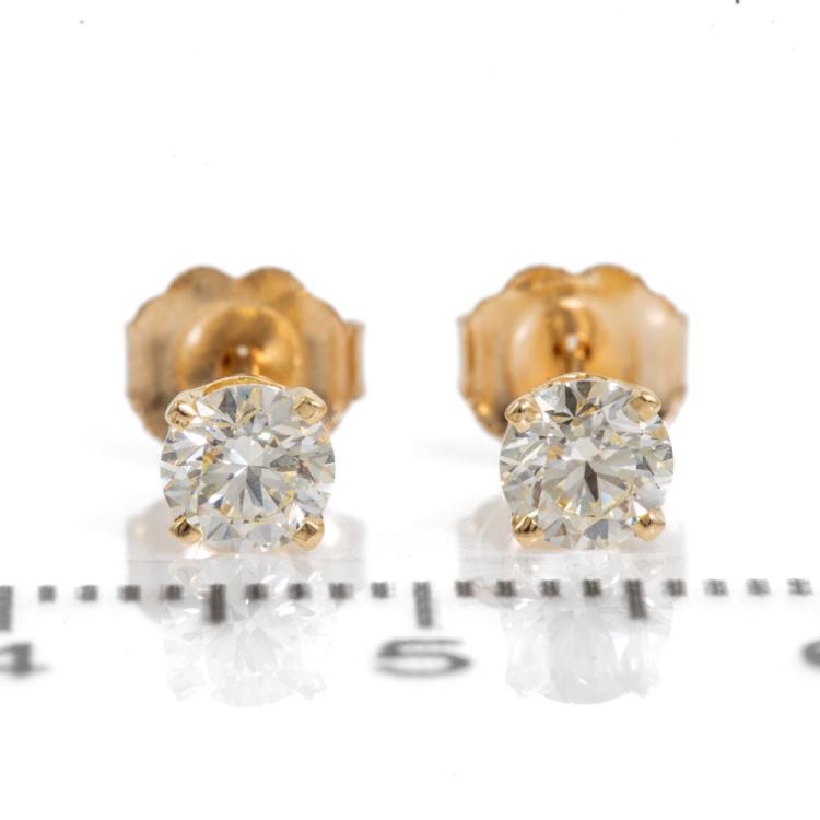 Diamond stud earrings with 2 round Diamonds totalling 0.61cts (Estimated grading: L-M VS-SI). 18ct yellow gold. Weight: 1.0g. (New)