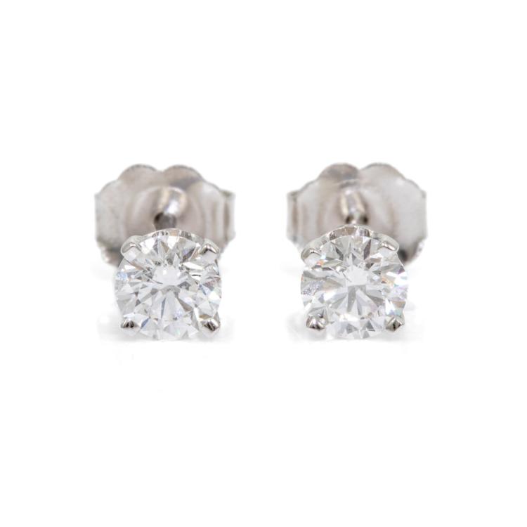 Diamond stud earrings with 2 round brilliant cut natural Diamonds totalling 0.64cts (both with GIA Summary Reports both graded as D Internally Flawless #5476237313, 7488063080). 18ct white gold. Weight: 1.0g. (New)